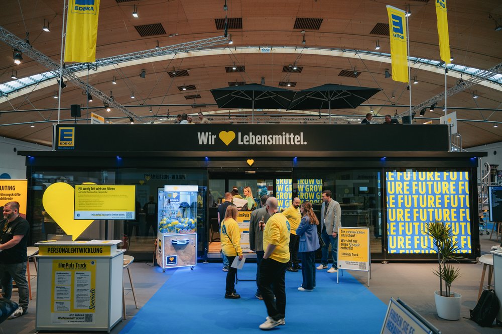 Ein Showroom, der Aufmerksamkeit schafft: Der EDEKA ImPuls Truck begeistert junge Menschen mit interaktiven Einblicken in die Welt des Einzelhandels. Nutzen Sie ihn für Recruiting, Seminare oder Events rund um Ihren Markt.